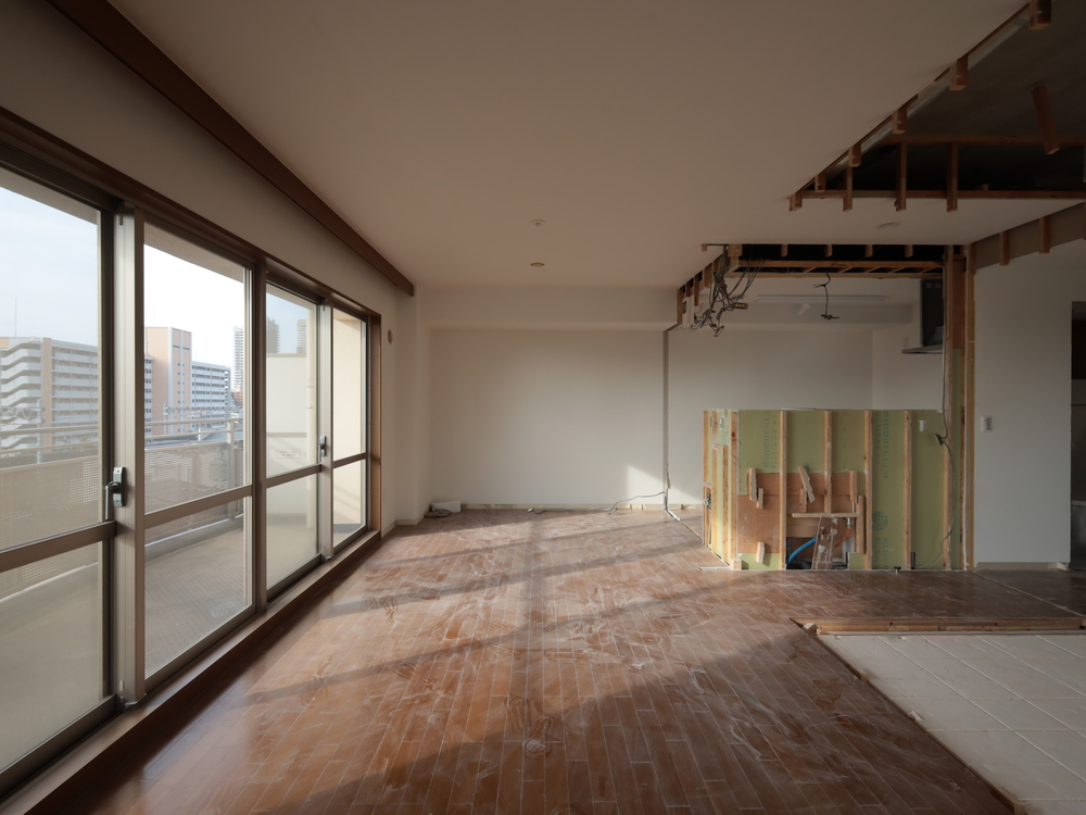 リビングの施工中