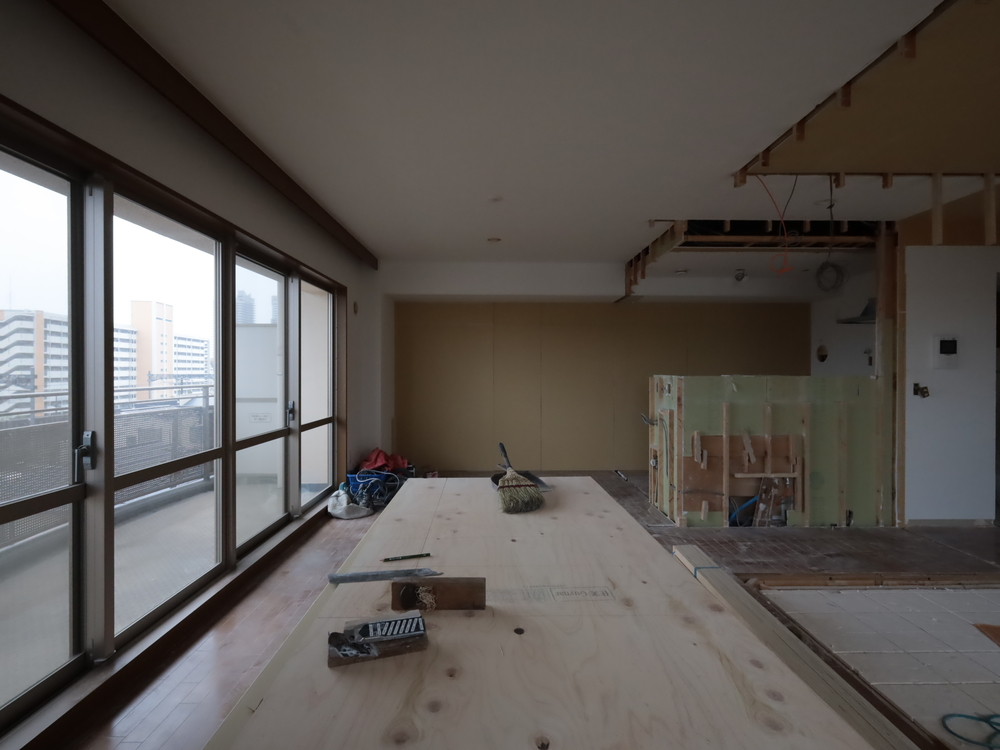 リビングの施工中