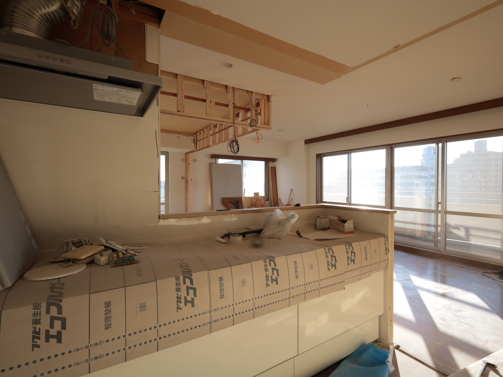 キッチンスペースの施工中
