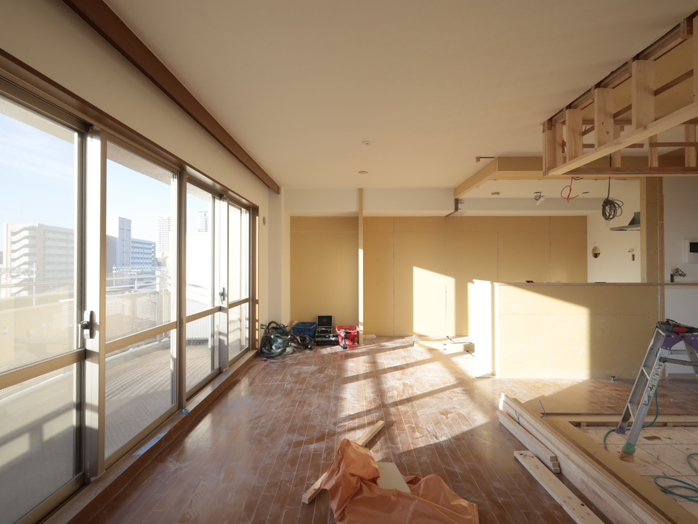 リビングの施工中