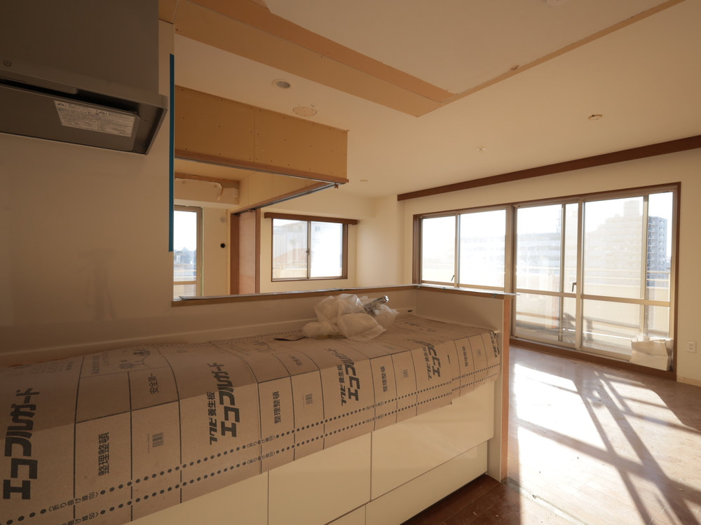 キッチンスペースの施工中