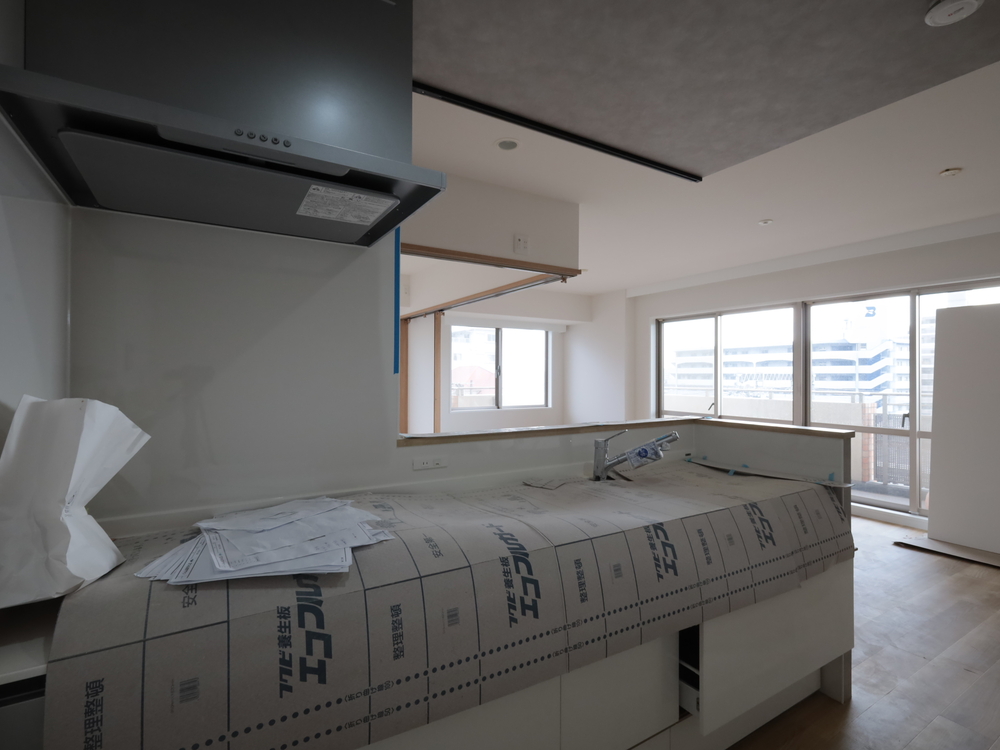キッチンスペースの施工中