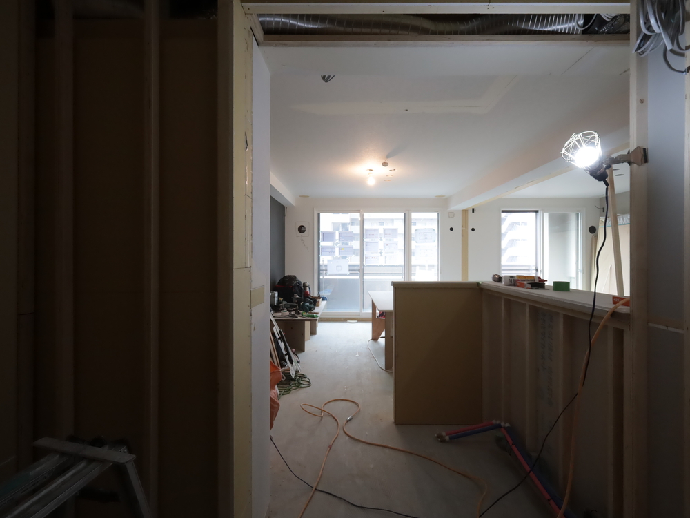 キッチンスペースの施工中