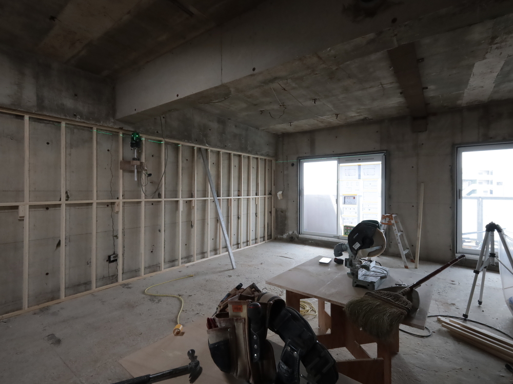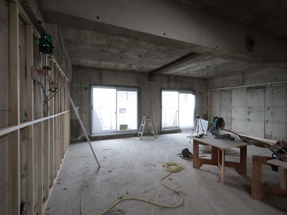 リビングの施工中