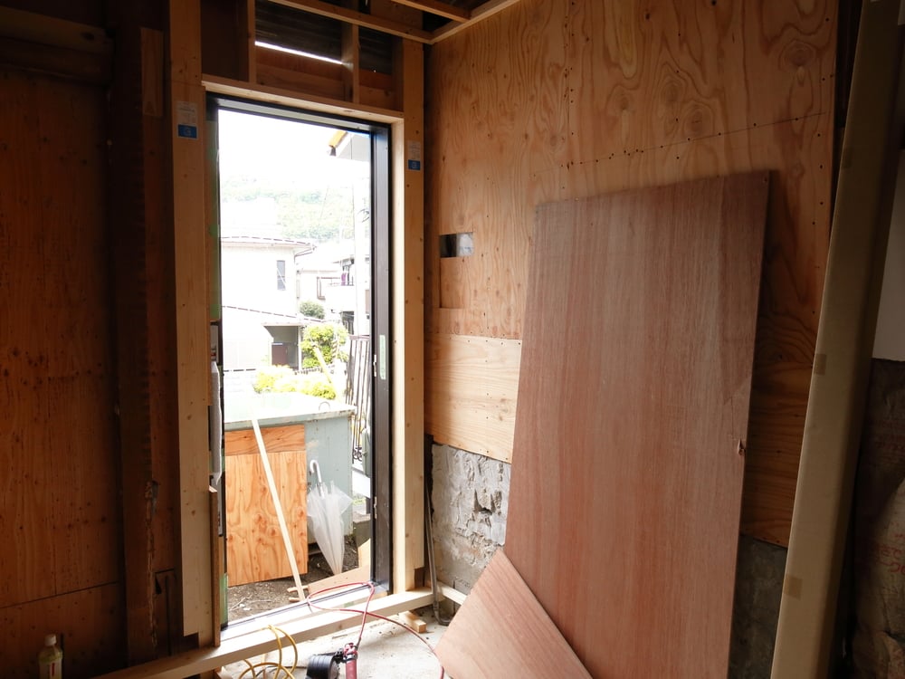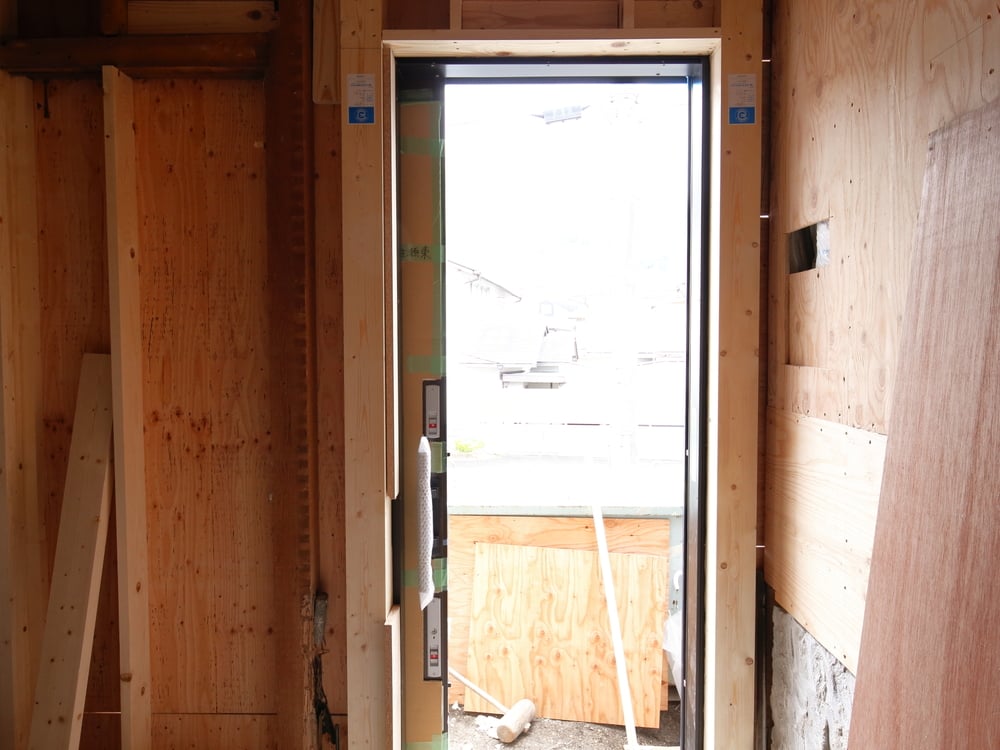 元あった玄関扉を撤去。新しい扉を設置しました。