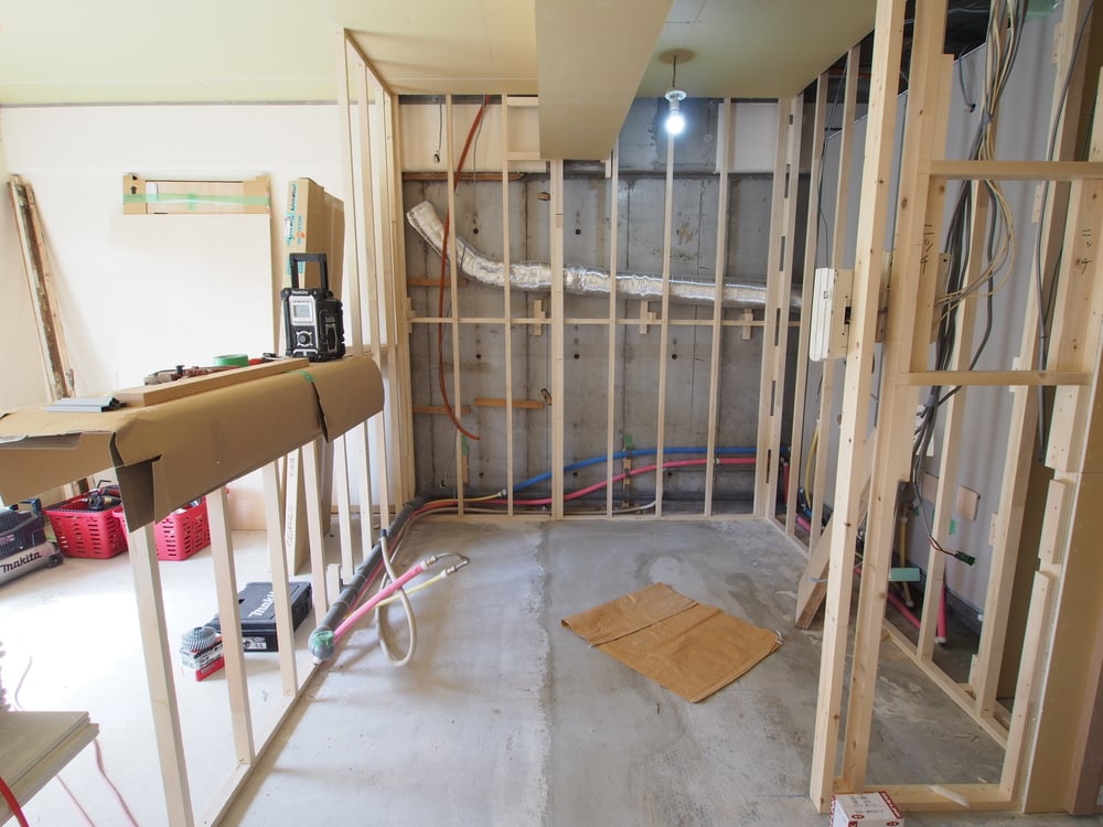 キッチンの枠組み工事を進めています