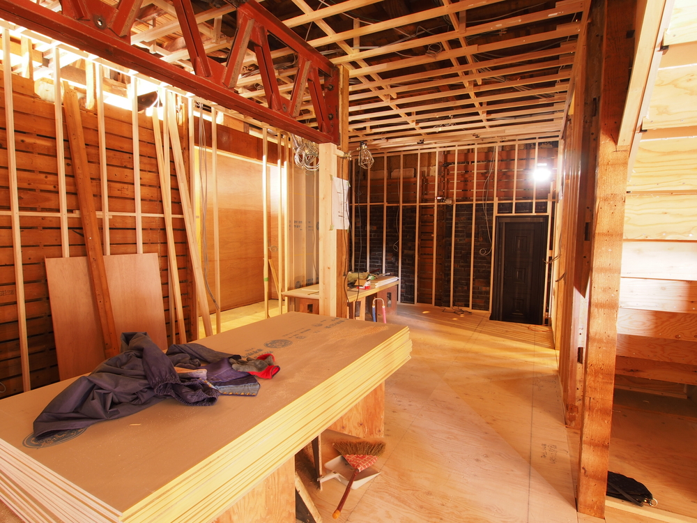 リビングの施工中