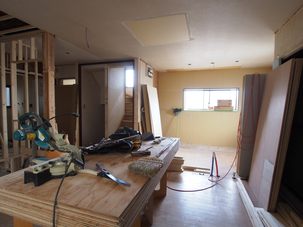 リビングの施工中