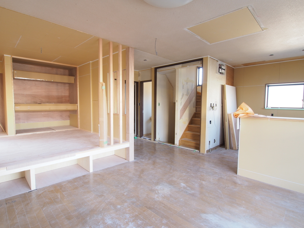 リビングの施工中