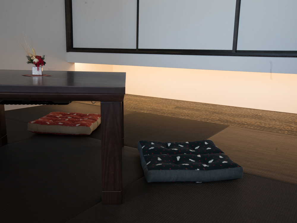 和テイストが強くなりすぎないように、畳はシックなチャコールグレーに。