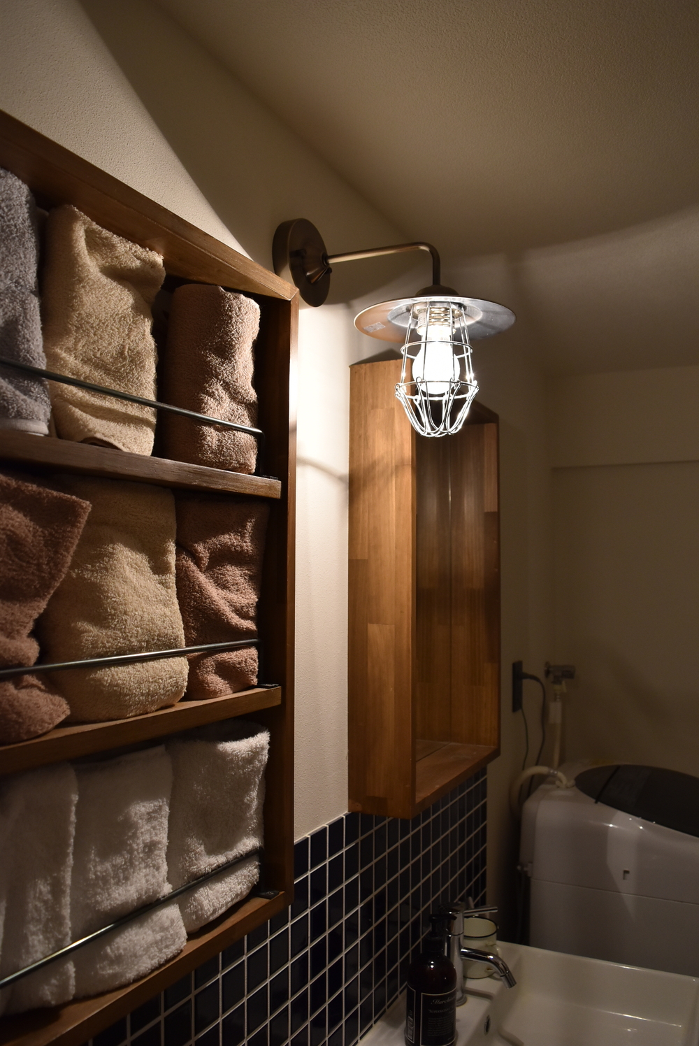 洗面スペースを雰囲気よく照らしてくれる後藤照明のライト