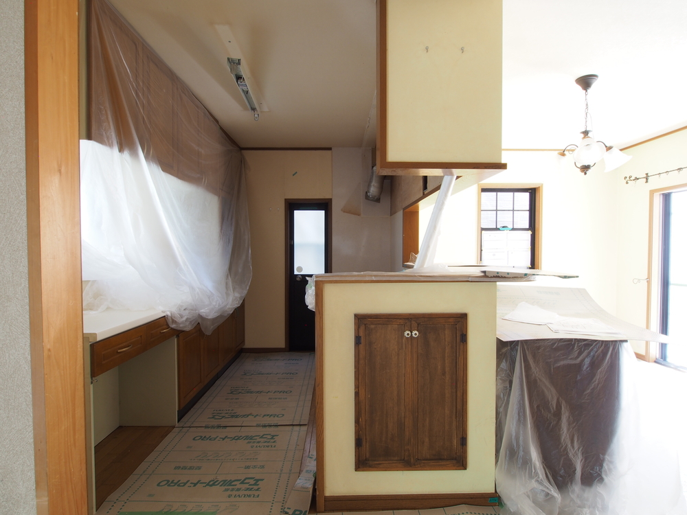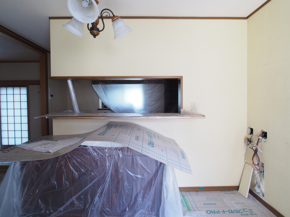 キッチンスペースの施工中