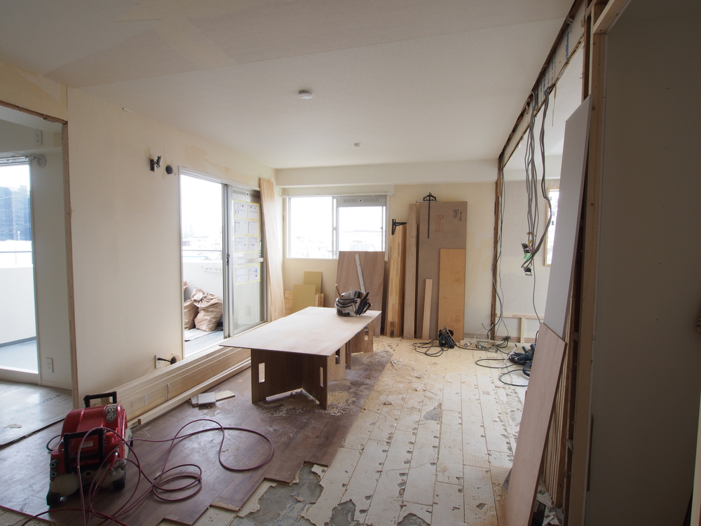 リビングの施工中
