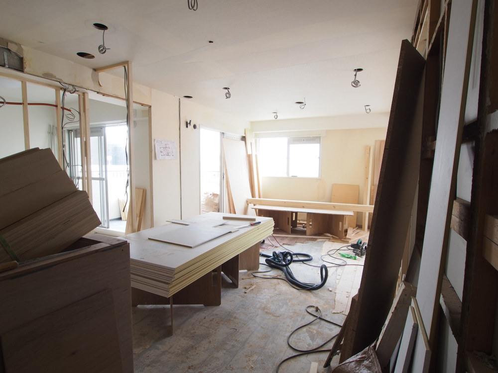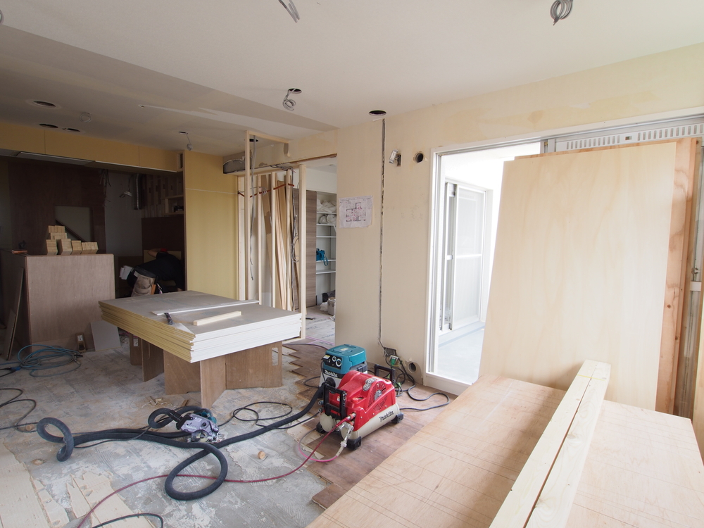 リビングの施工中
