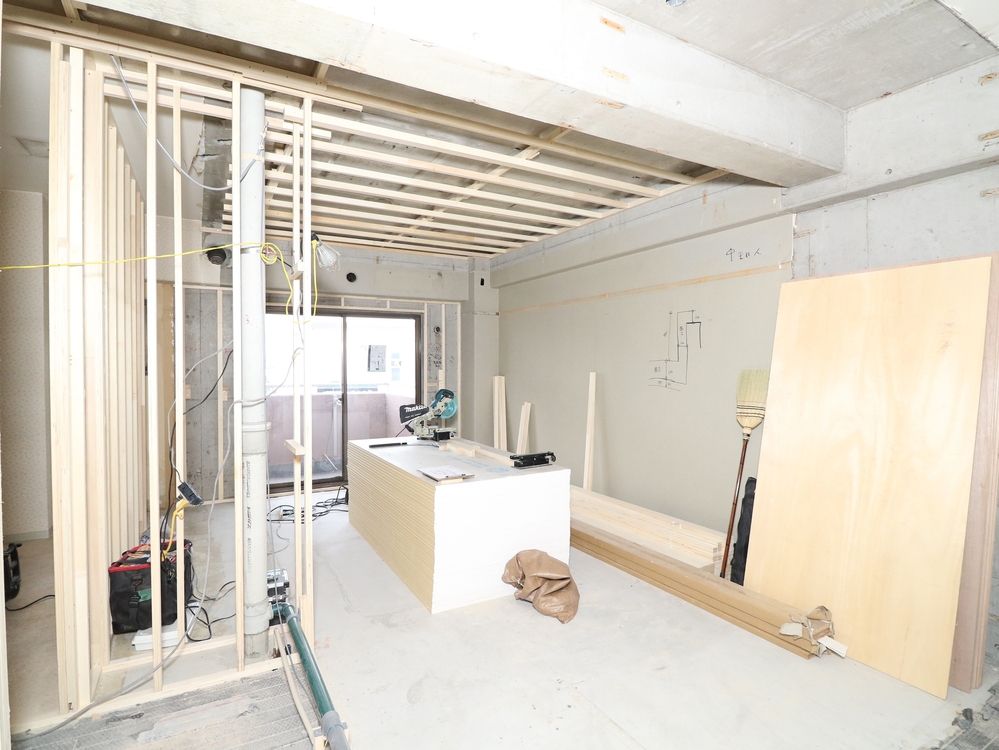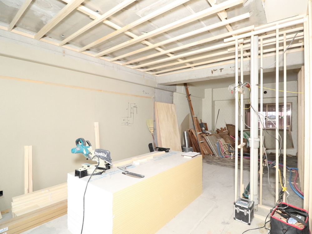 リビングの施工中