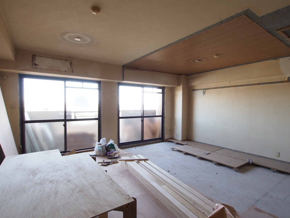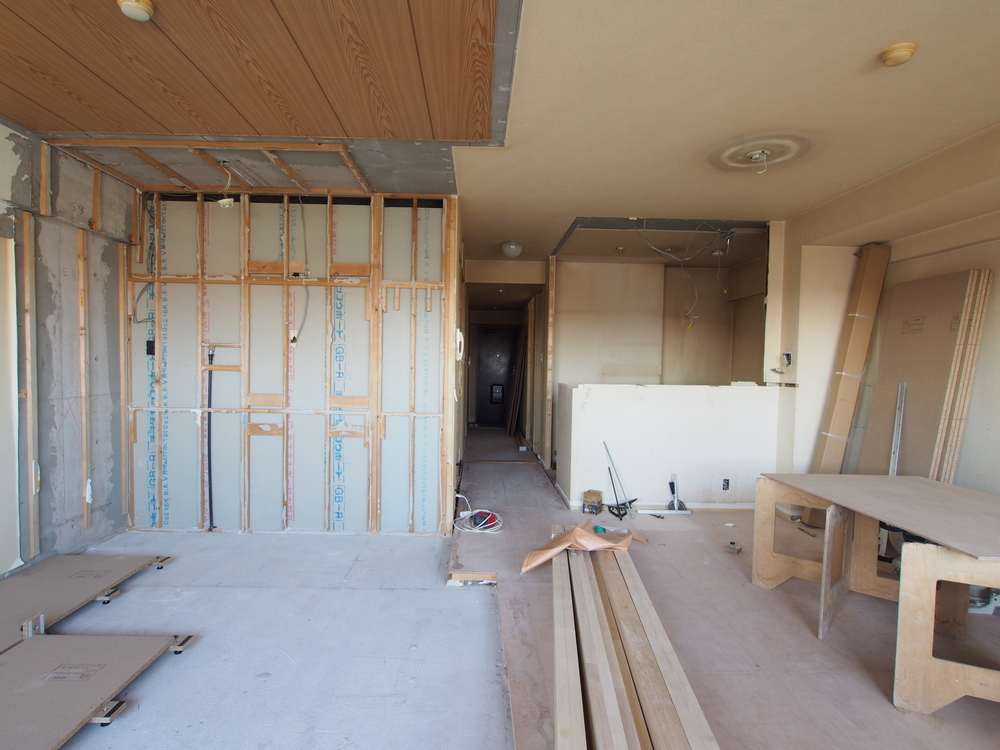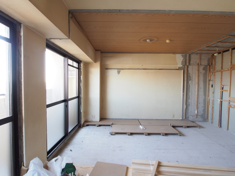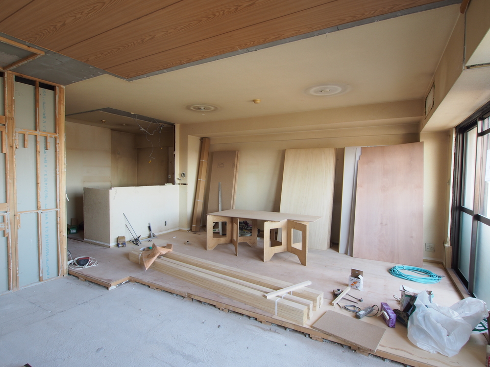 リビングの施工中