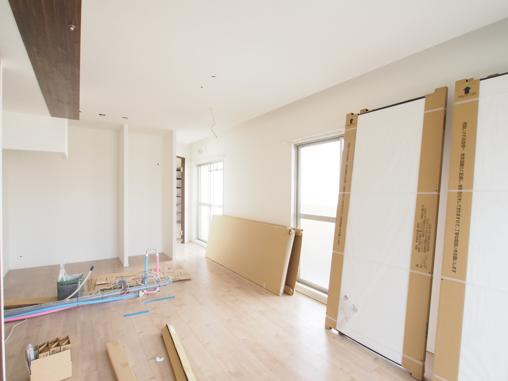 リビングの施工中