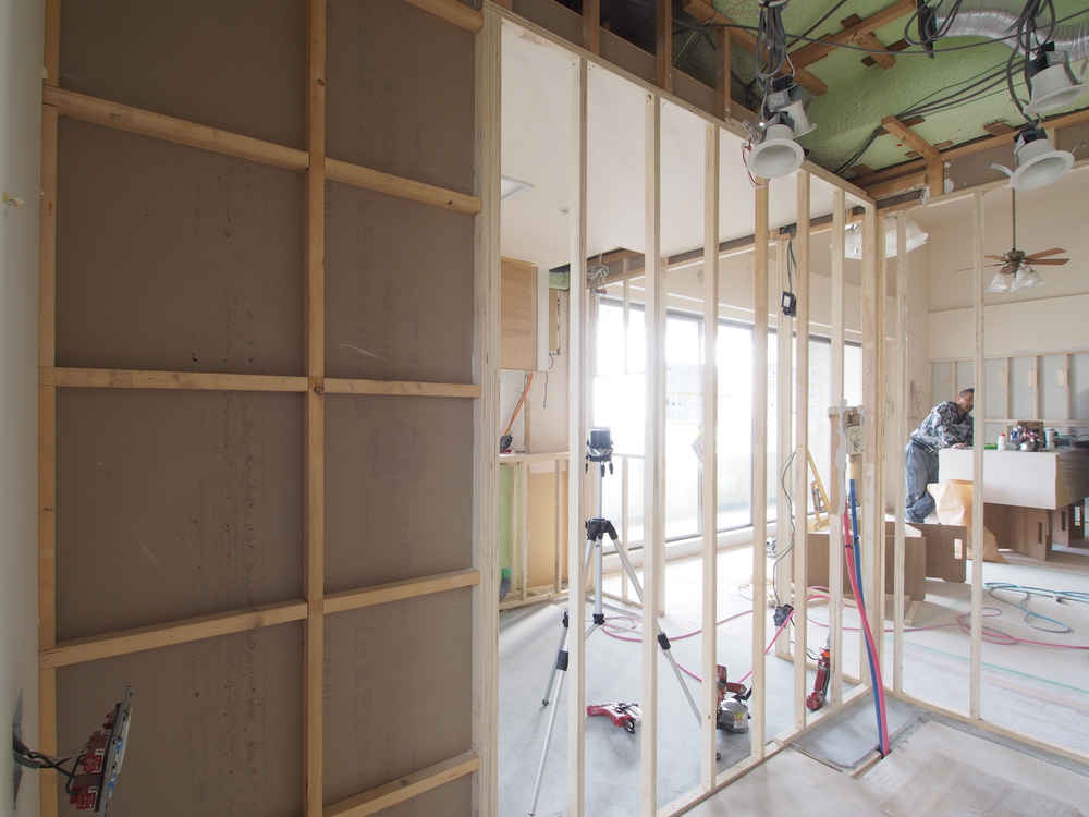 残っていた壁を撤去、新しく壁を造作しています。