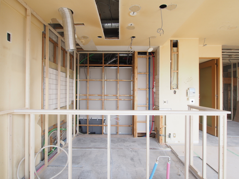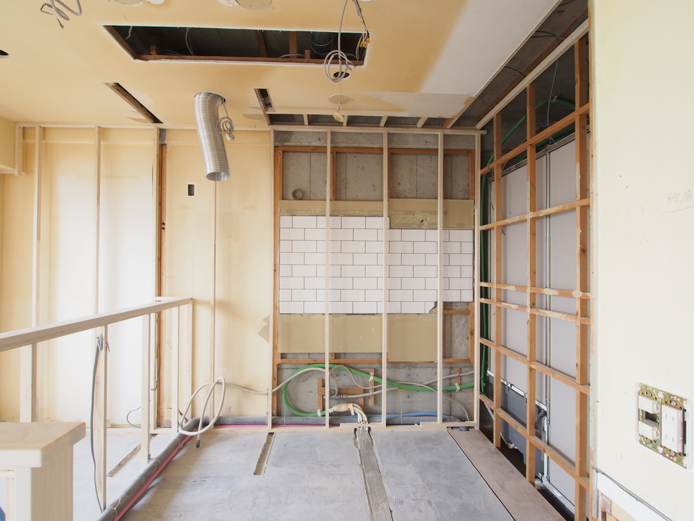 キッチンスペースの施工中