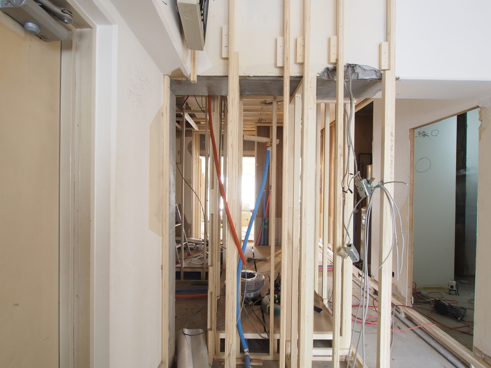 玄関の施工中