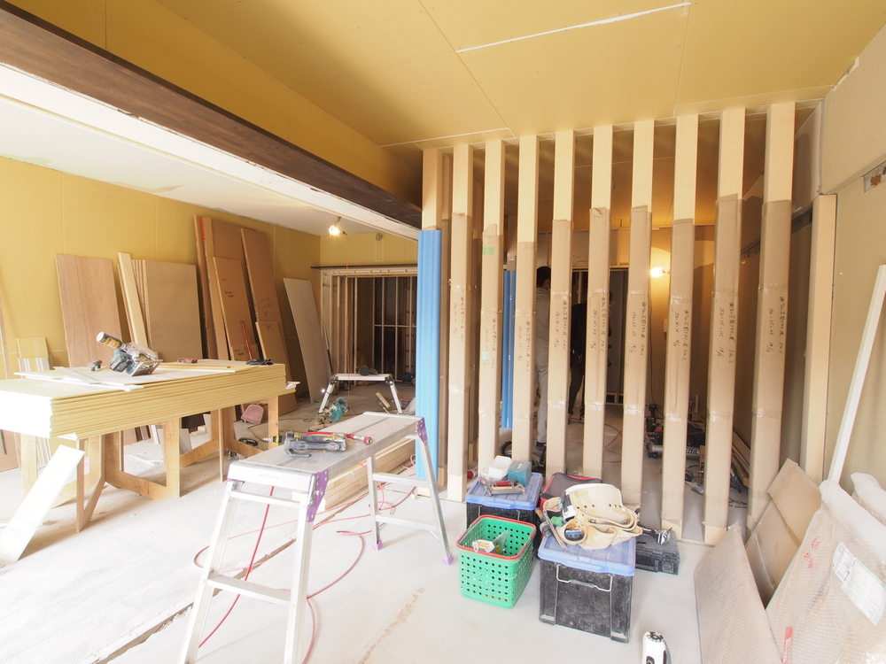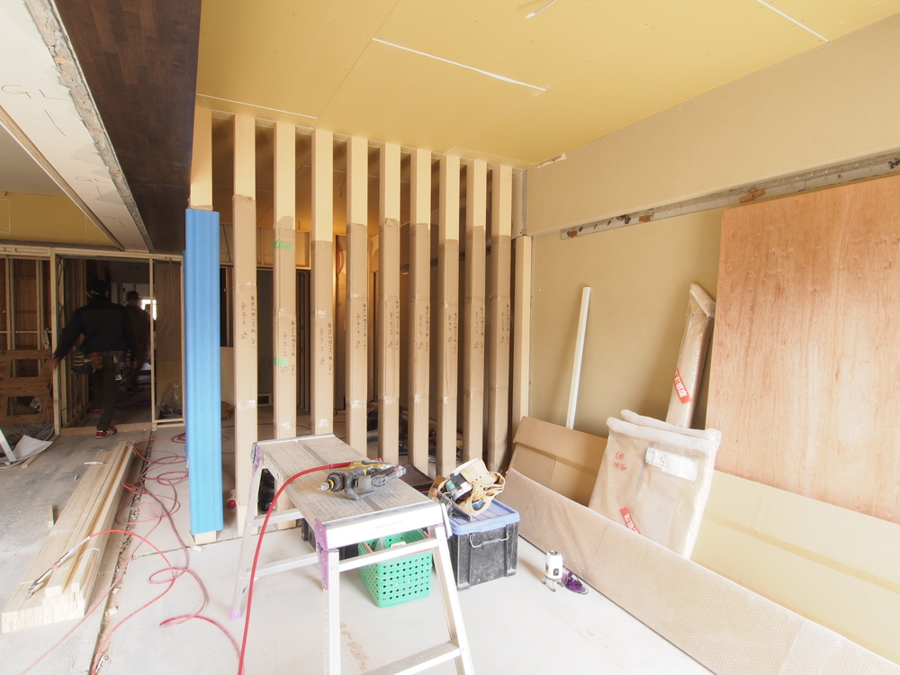 リビングの施工中