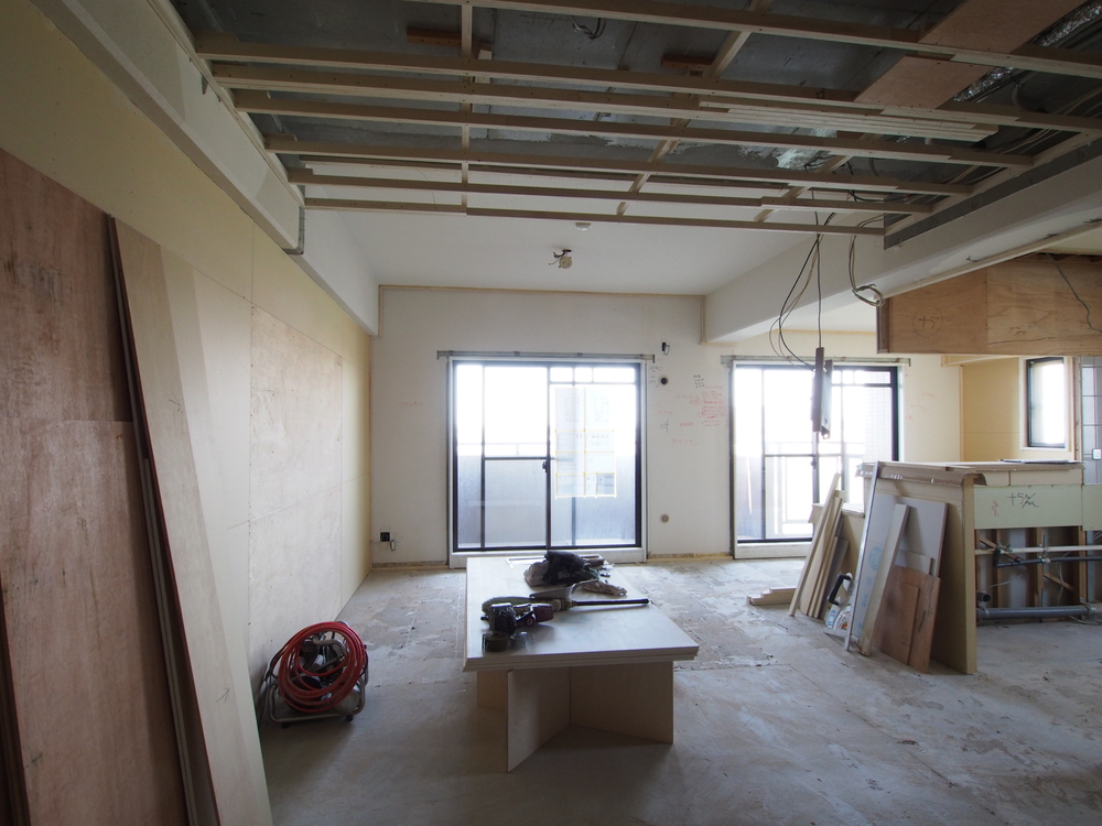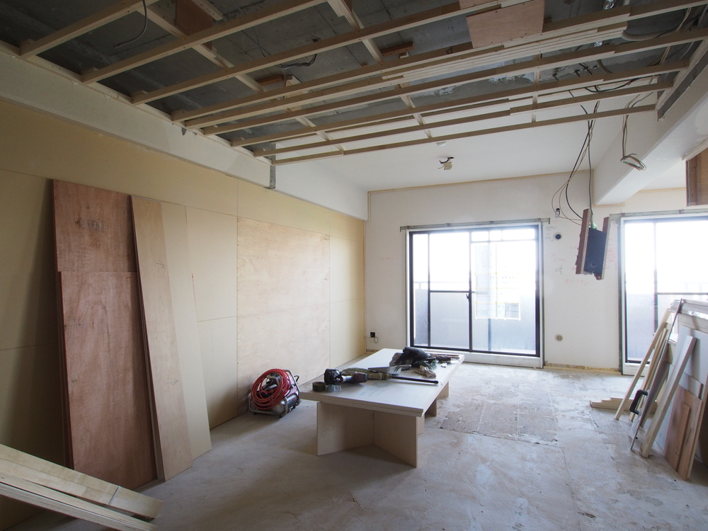 リビングの施工中