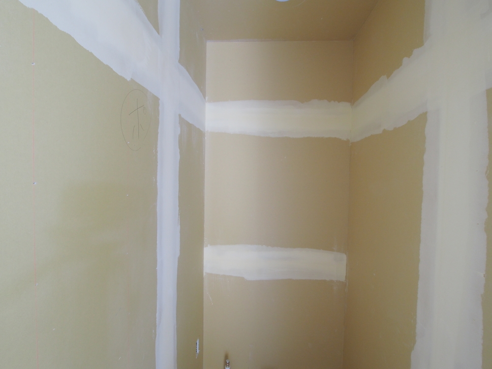 広い玄関土間と、洋室の斜めの壁が特徴の1LDKプラン