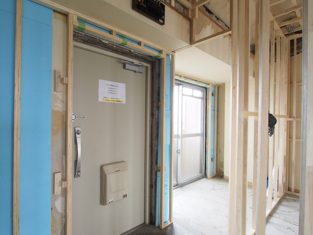 玄関の施工中