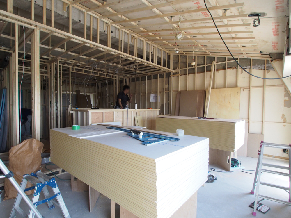 リビングの施工中