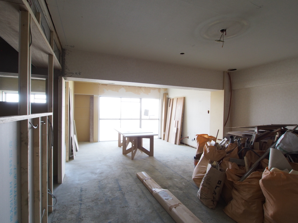 リビングの施工中