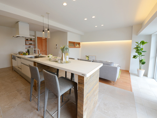 ダイニングとキッチンを一体型にすることによって、キッチンとダイニングの繋がりを密にして、