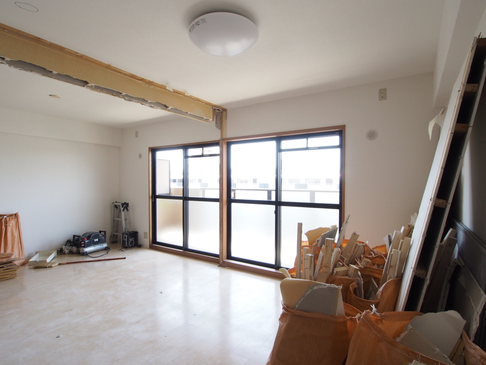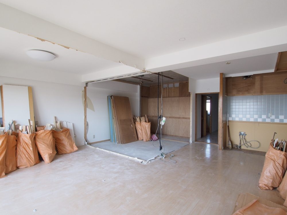 リビングの施工中