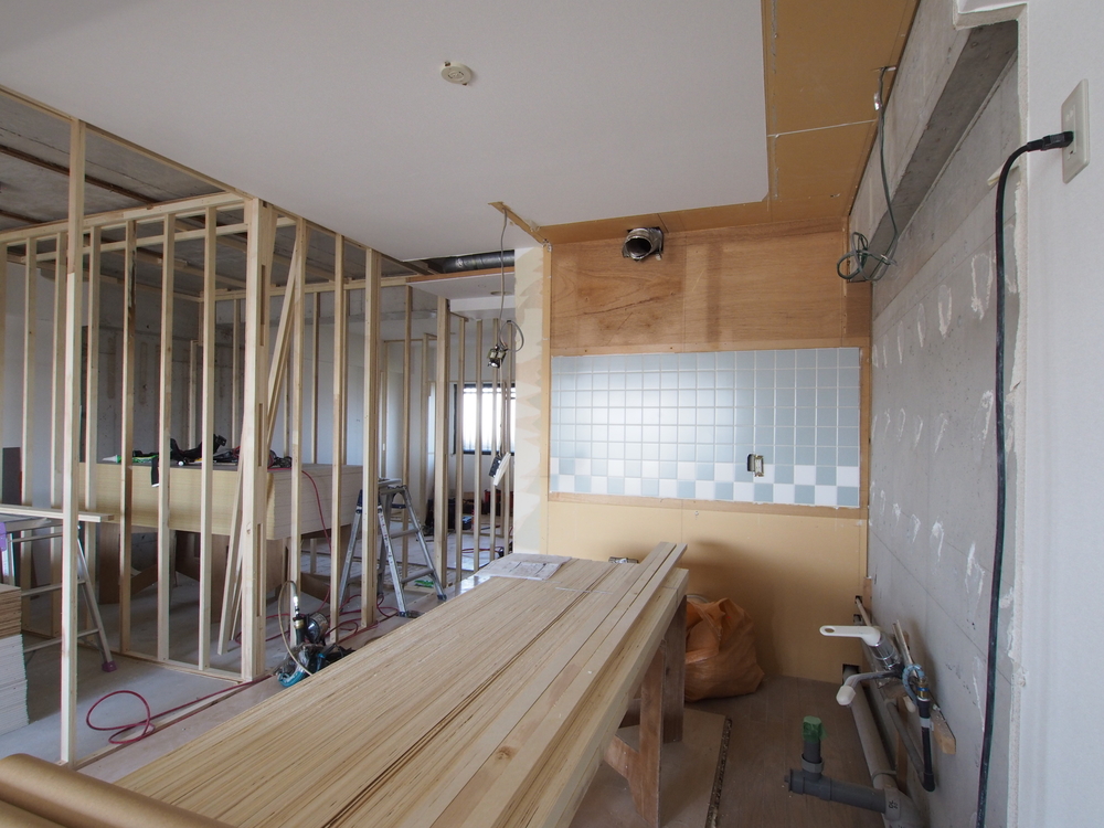 キッチンスペースの施工中