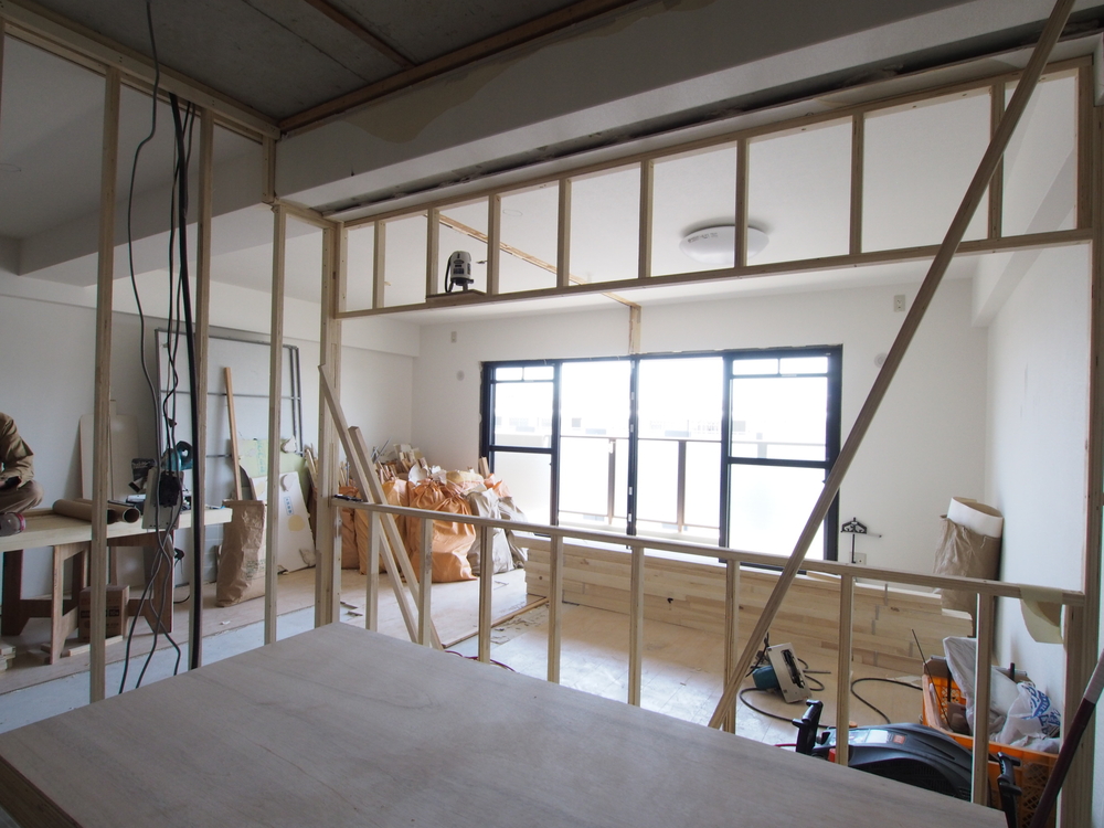 書斎の施工中