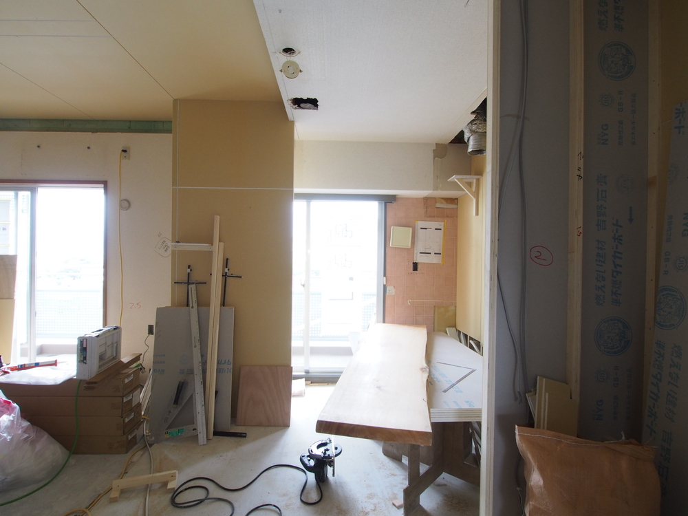 キッチンスペースの施工中