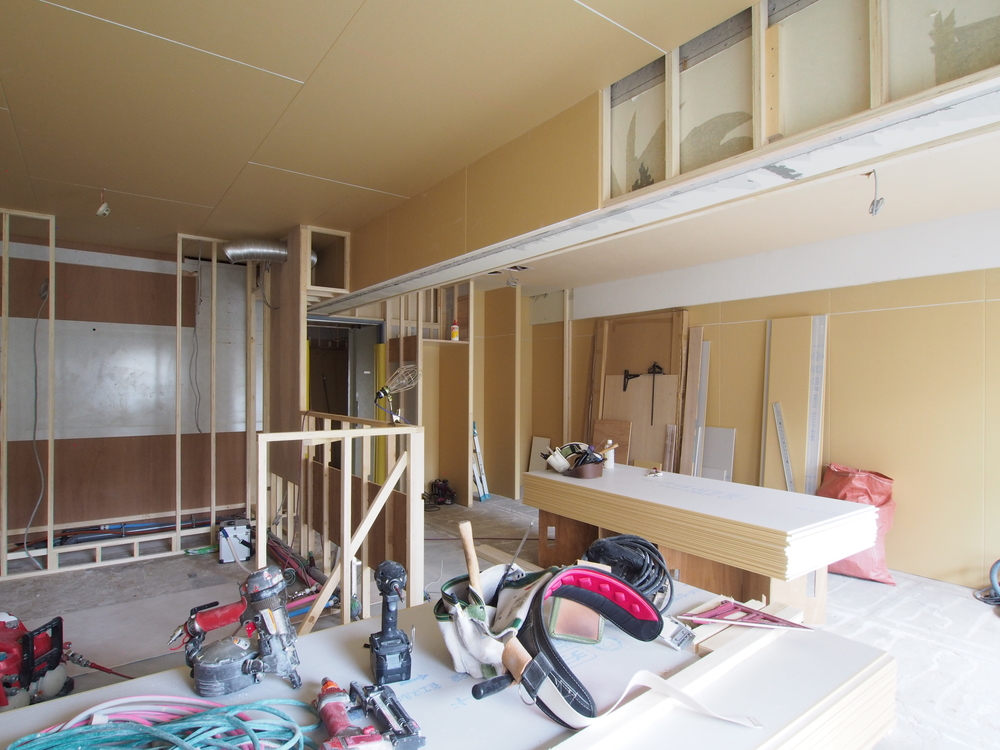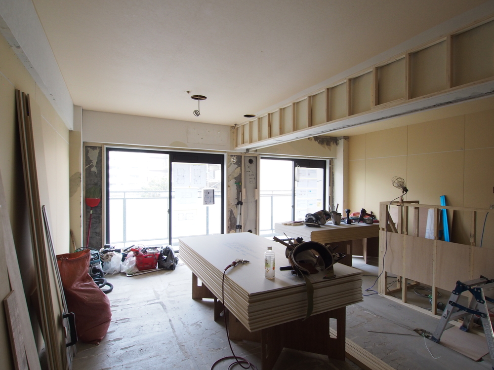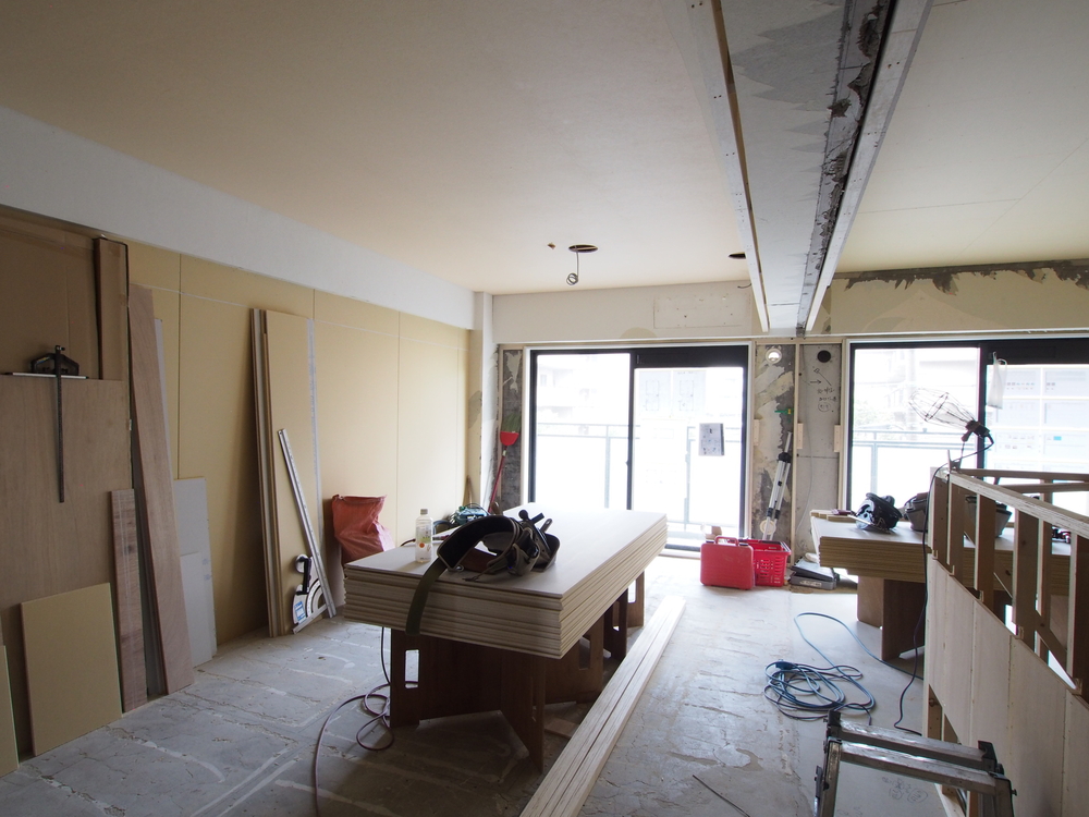 リビングの施工中