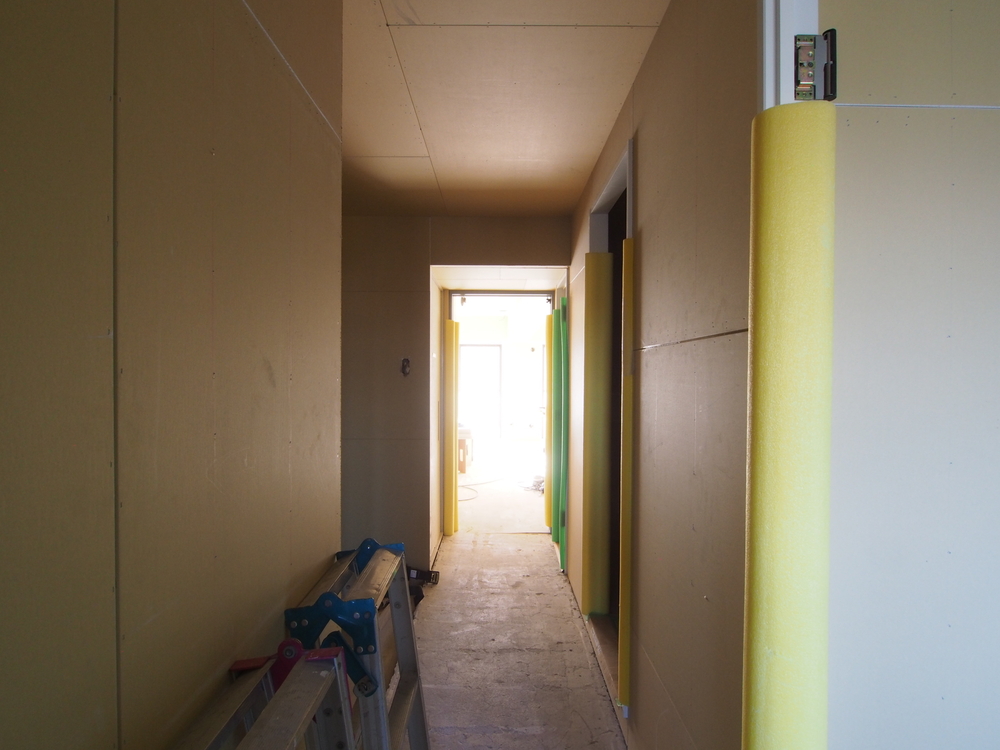 廊下の天井・壁にボードを貼りました。