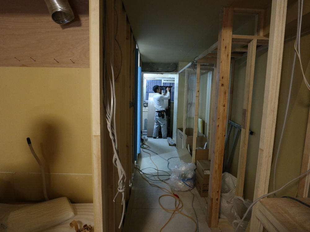 廊下の施工中
