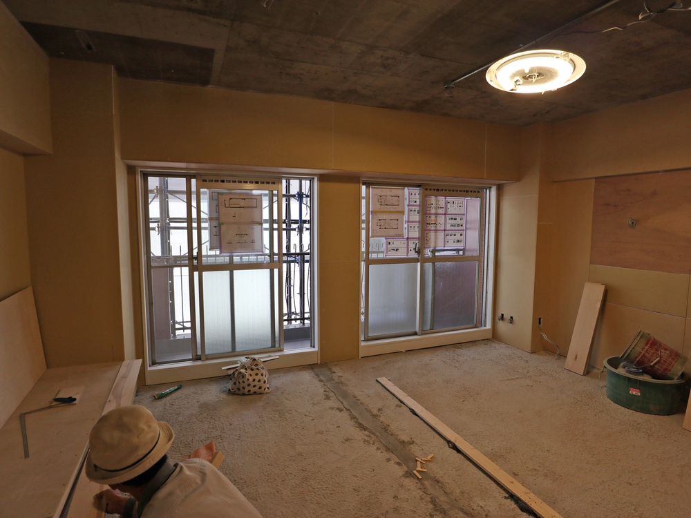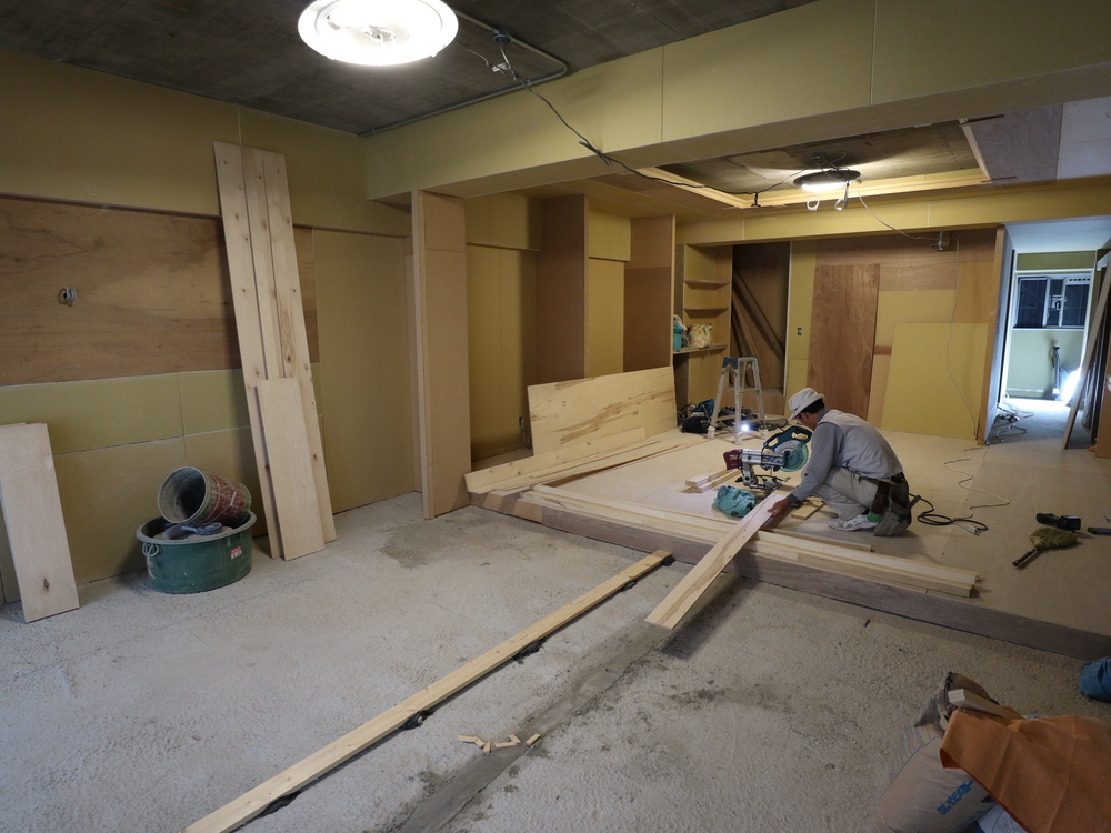 リビングの施工中