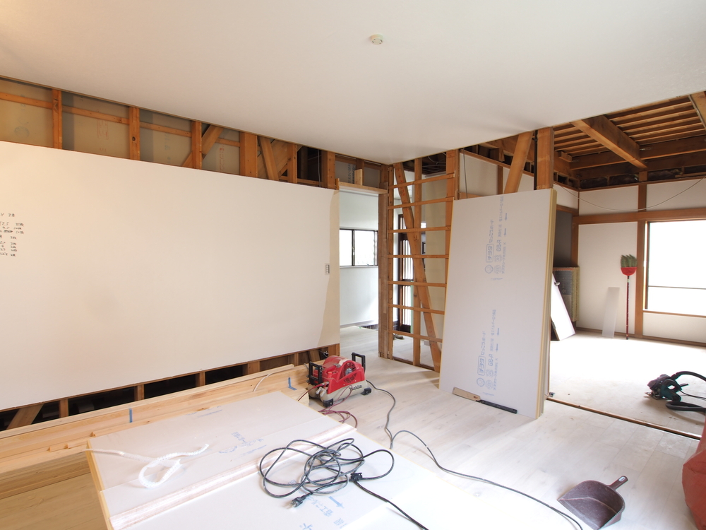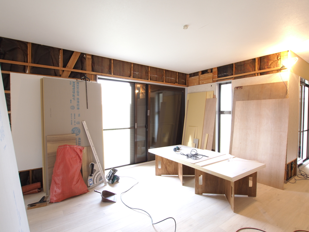 リビングの施工中