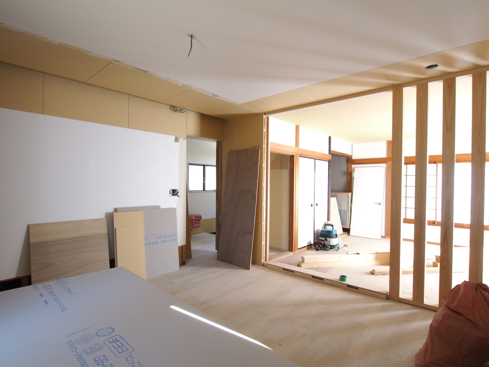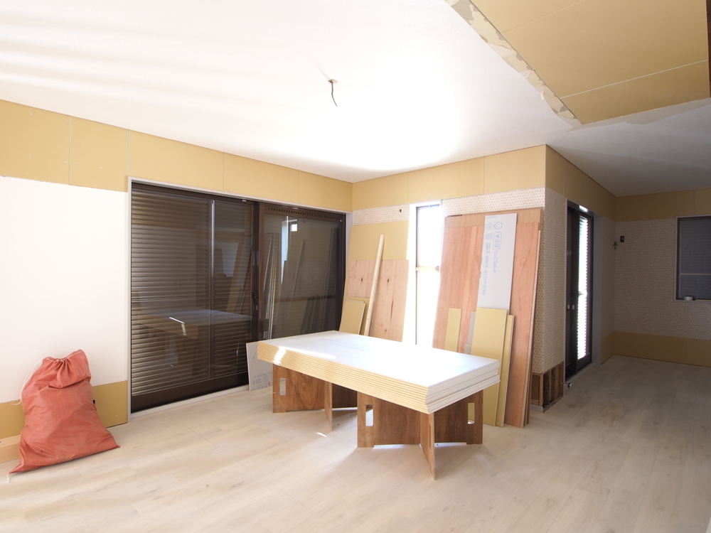 リビングの施工中