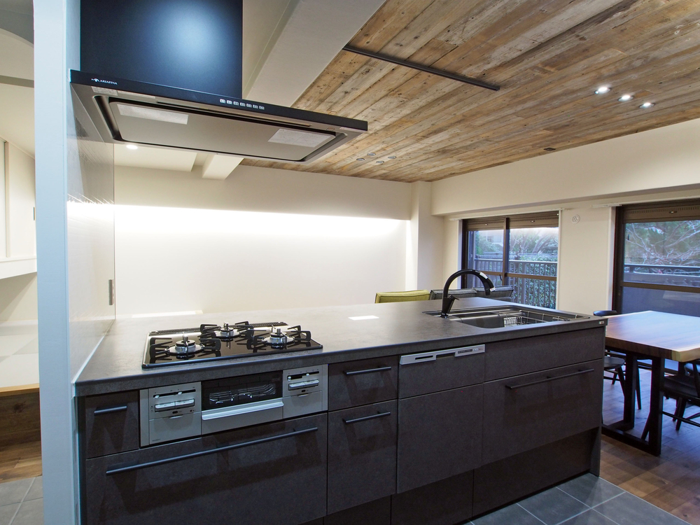 直接洗面室にアクセスできる家事動線のよいキッチンスペース