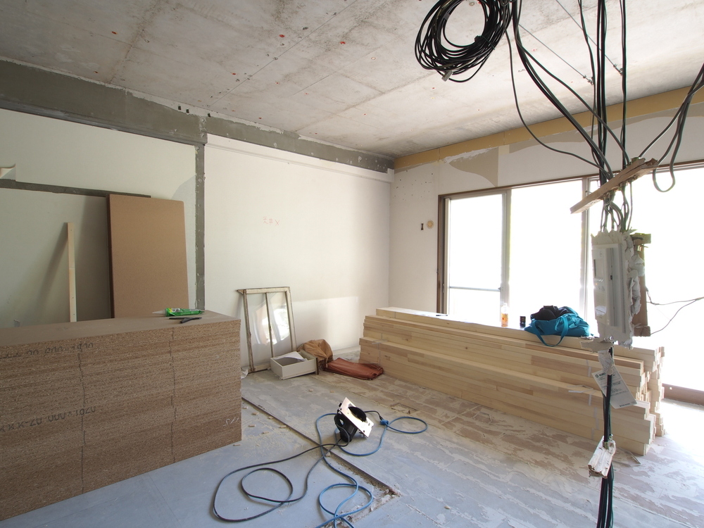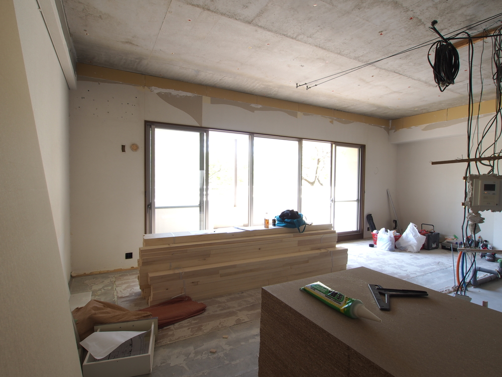 リビングの施工中