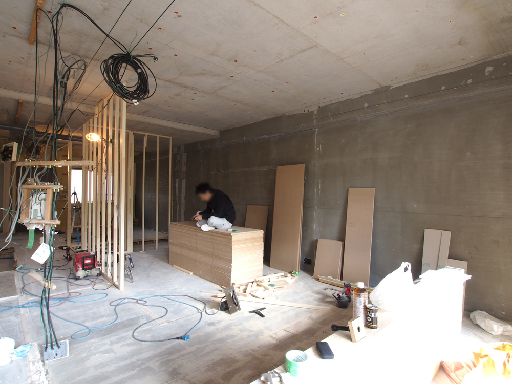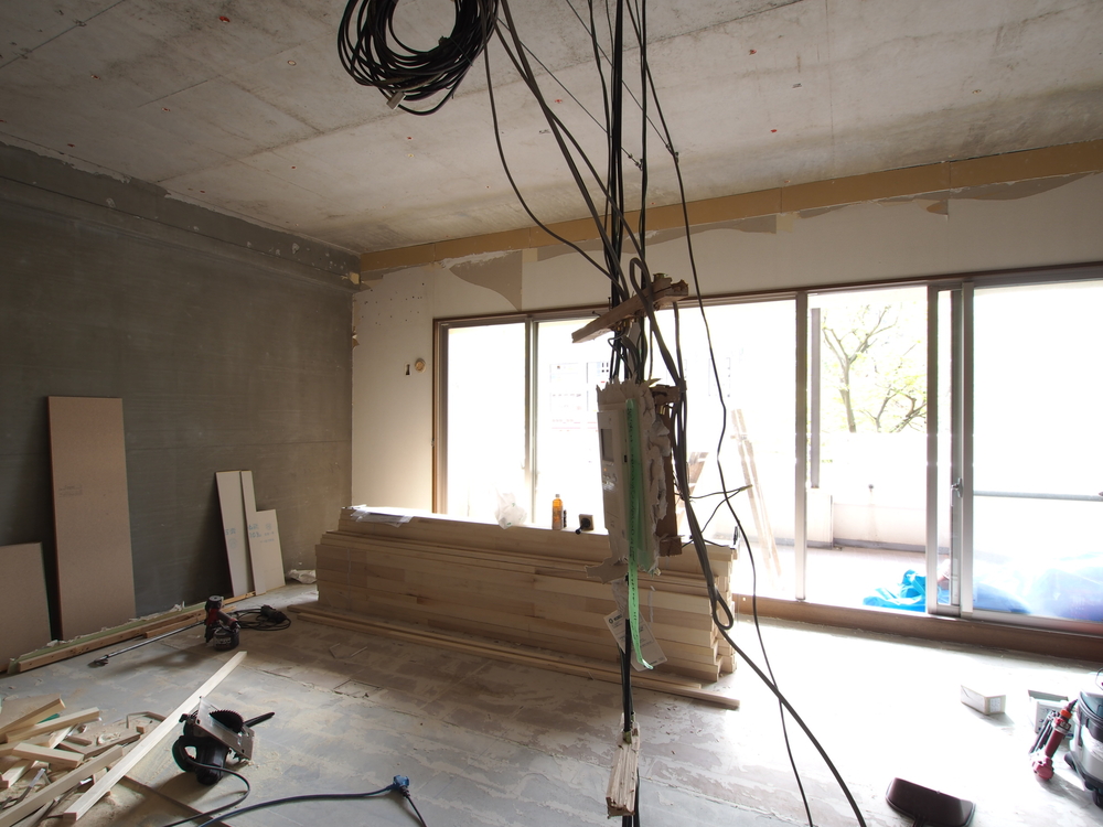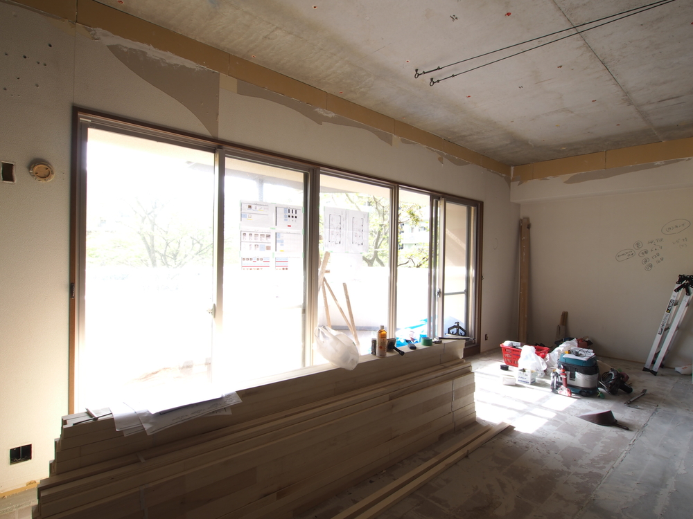 リビングの施工中