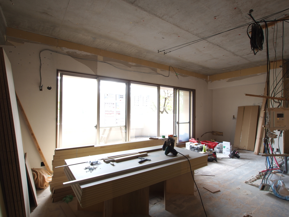 リビングの施工中