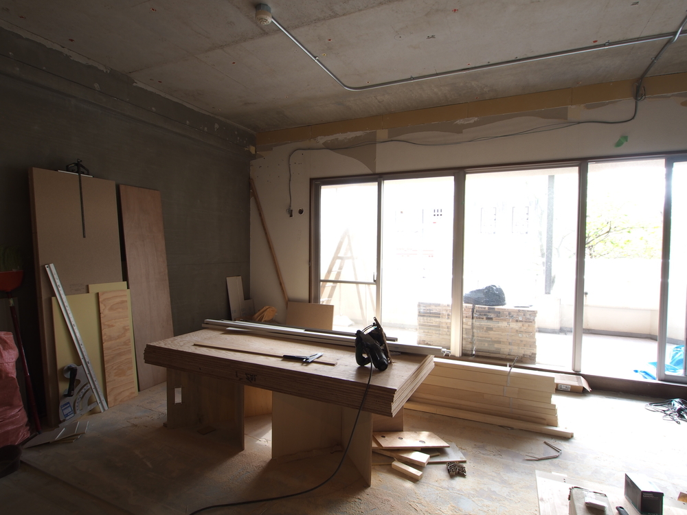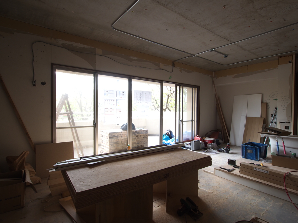 リビングの施工中