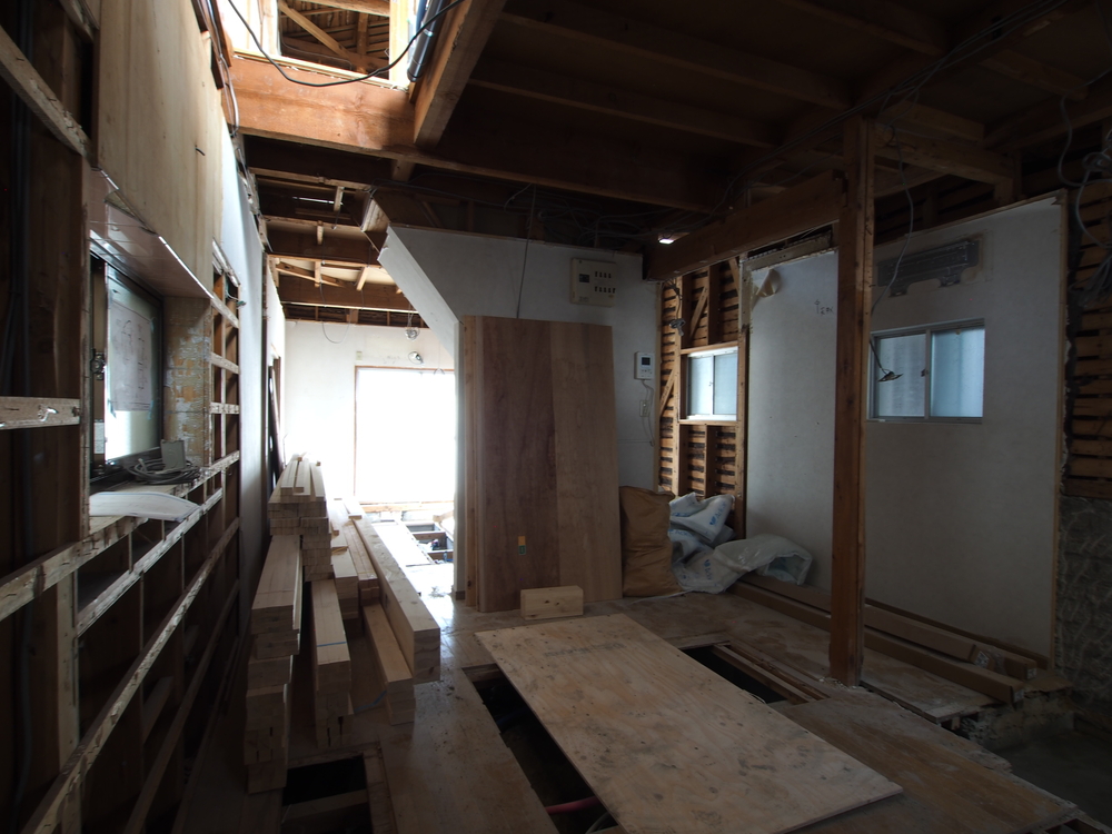 キッチンスペースの施工中