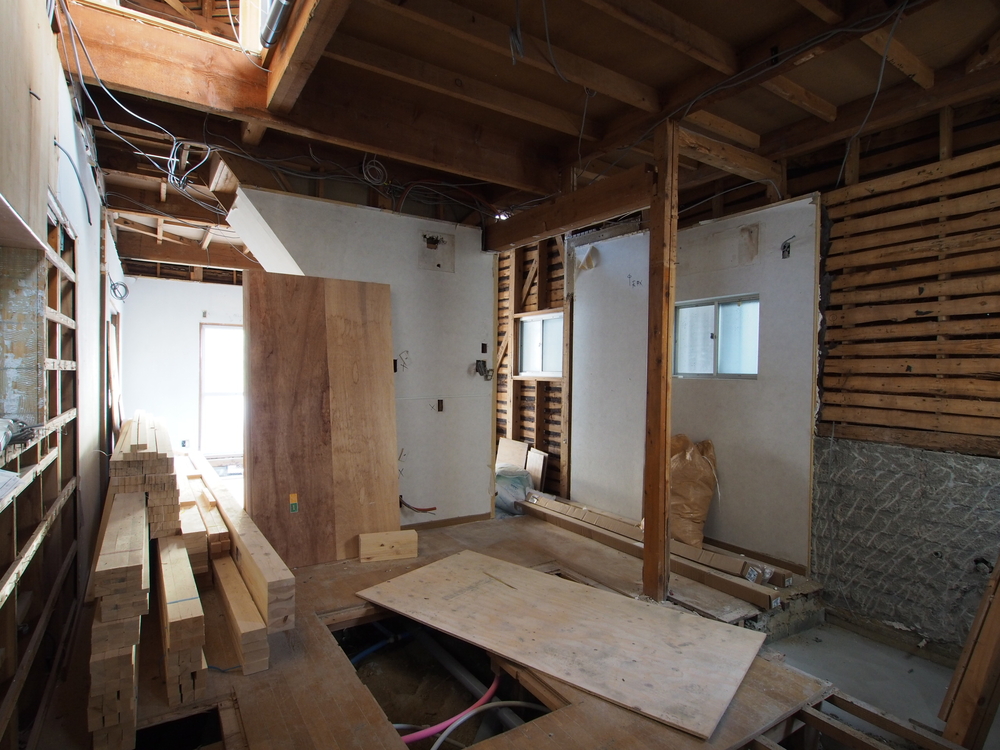 キッチンスペースの施工中