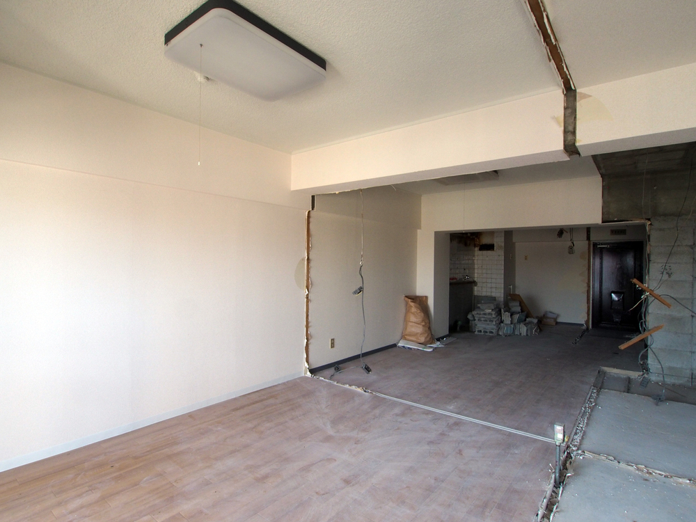 リビングの施工中
