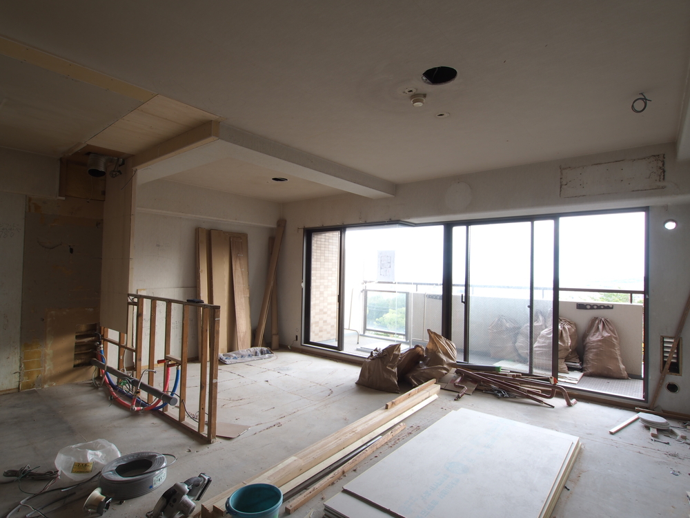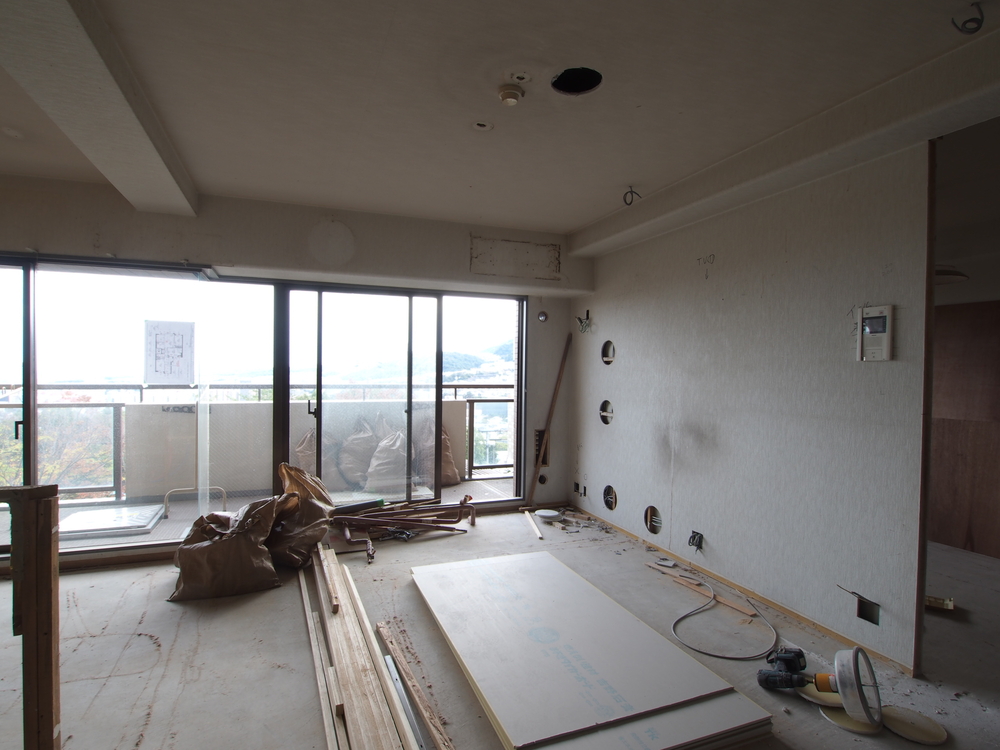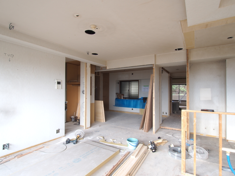 リビングの施工中
